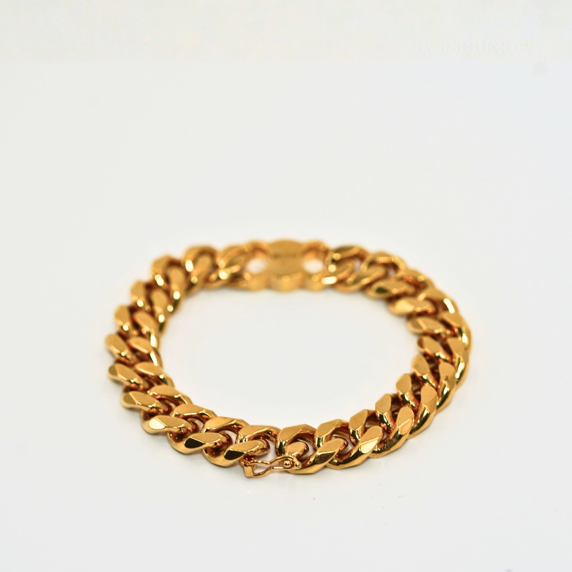 Celine’in ikonik Triomphe logosu ile tasarlanan bu gold bilezik, markanın sade ama güçlü stil anlayışını yansıtıyor.